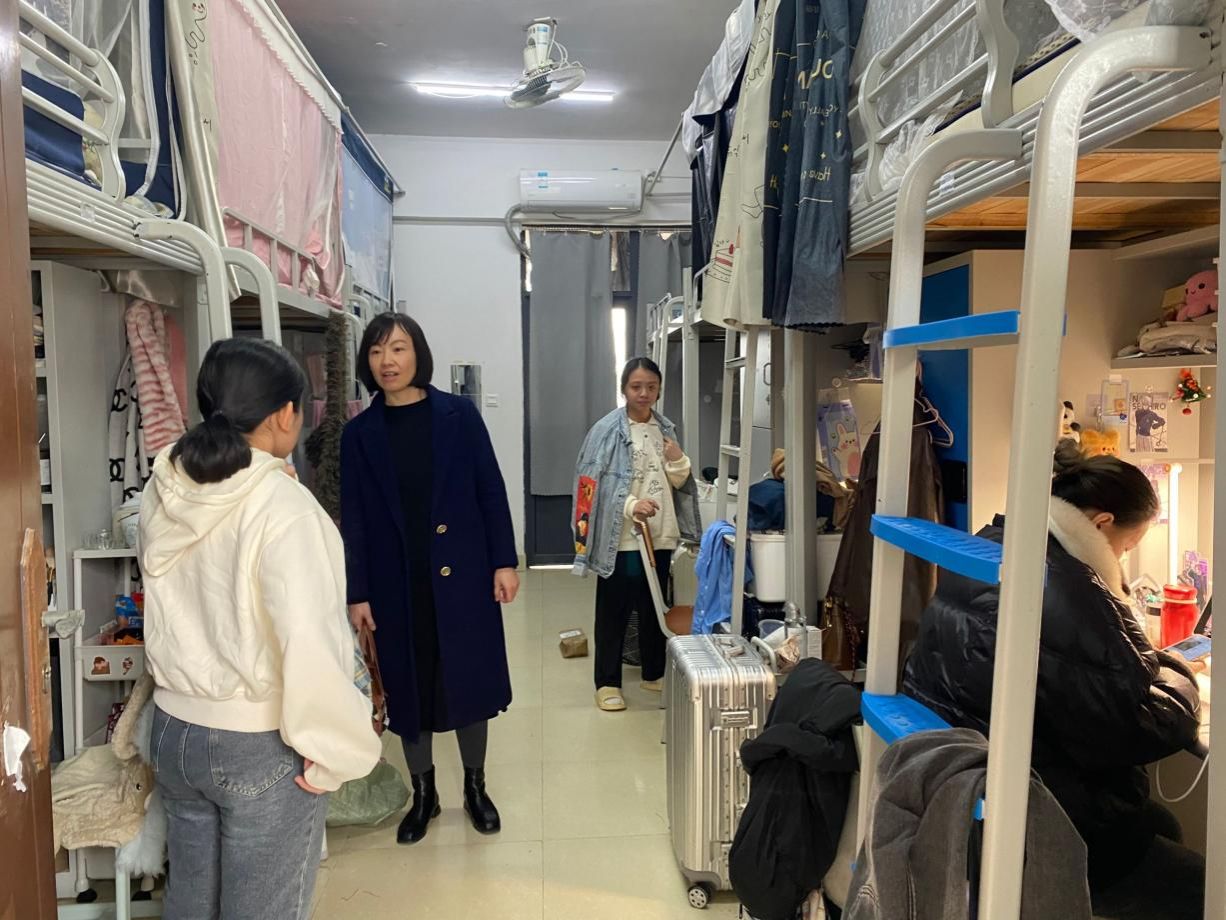 走访过程中,学院领导细致询问同学们寒假生活及新学期规划,倾听学生诉求。领导们勉励大家要立足新起点,树立清晰目标,以饱满的状态投入学业:“新学期要有新气象,同学们既要认真听课、夯实专业基础,也要主动‘走出宿舍、拥抱校园’‘放下手机、坚持运动’,在强健体魄中激扬青春活力。”并强调,青年学子需平衡学习与生活,积极参与社会实践,争做德智体美劳全面发展的新时代大学生。